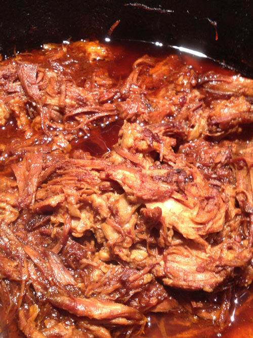 After 6 hours – check it again – the meat should rip apart easily with a fork, if not, let it cook longer. If it’s pull apart fork tender, then you are good to go.